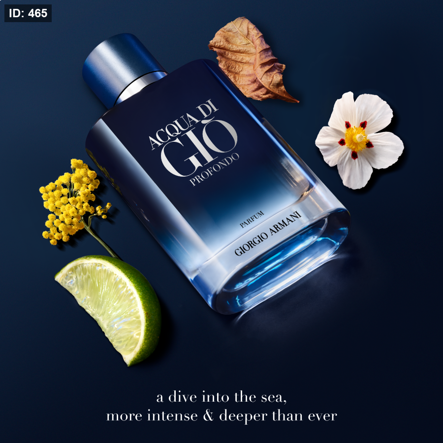 تتميز مقدمة عطر أكوا دي جيو بروفوندو بنفحات بحرية منعشة ويوسفي أخضر، مما يمنح إحساسًا فوريًا بالانتعاش. ومع تطور العطر، تكشف نفحاته الوسطى عن لمسة من الميموزا، مضيفةً لمسة زهرية رقيقة. وأخيرًا، تمنح النفحات الأساسية من الباتشولي واللابدانوم انطباعًا غنيًا يدوم طويلًا، مما يضمن بقاء العطر طوال اليوم.