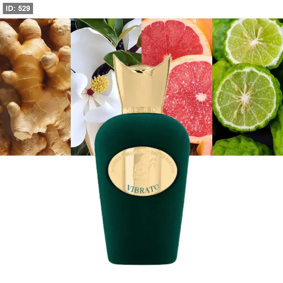 يفتتح عطر فيبراتو بنفحة مشرقة من البرغموت والجريب فروت، ليقدم مقدمة حمضية منعشة ومشرقة. ومع تطور العطر، تُضفي نفحات الياسمين والماغنوليا الرقيقة لمسة ناعمة وأنيقة، لتخلق تركيبة متوازنة بشكل رائع. أما قلب العطر فيكشف عن مزيج فريد من الزنجبيل، ونفحات بودرية، ولمسات عشبية، ليضيف تعقيدًا آسرًا يُبقي الحواس منجذبة.تتميز قاعدة هذا العطر الساحر بثراء وجاذبية، حيث تجمع بين دفء خشب الأرز والباتشولي الترابي، ونعومة جذور السوسن المخملية، ودفء العنبر العميق والمسك. تمتزج هذه المكونات بسلاسة، تاركةً انطباعًا دائمًا يجمع بين الرقي والجاذبية.